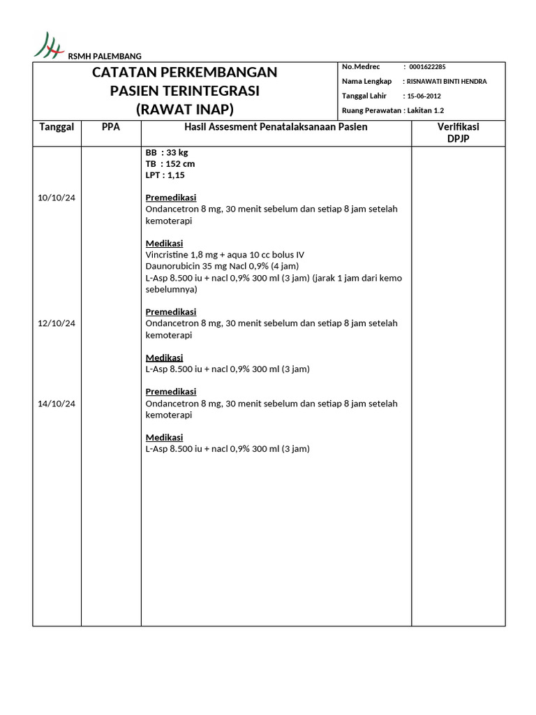 PASIEN TERINTEGRASI Tanggal Lahir : 15-06-2012
