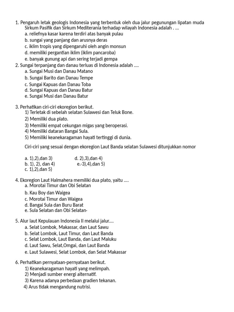 3. Berikut yang bukan dampak dari letak Indonesia secara geologis adalah....