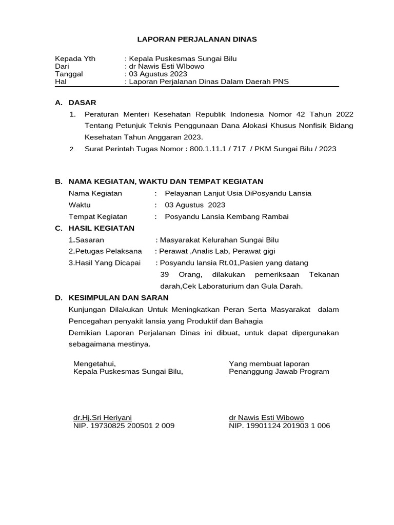 Hal : Laporan Perjalanan Dinas Dalam Daerah PNS