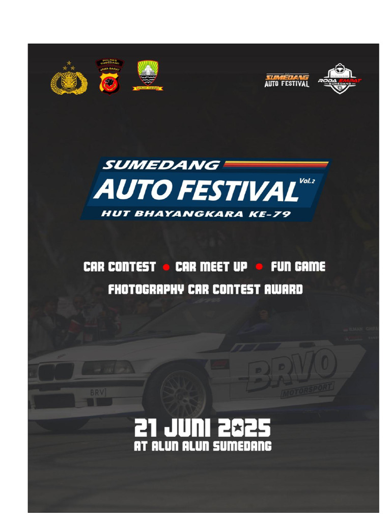 Melalui Event Sumedang Auto Festival Vol. 2, dalam rangka HUT BHAYANGKARA ke 79, kami mengundang