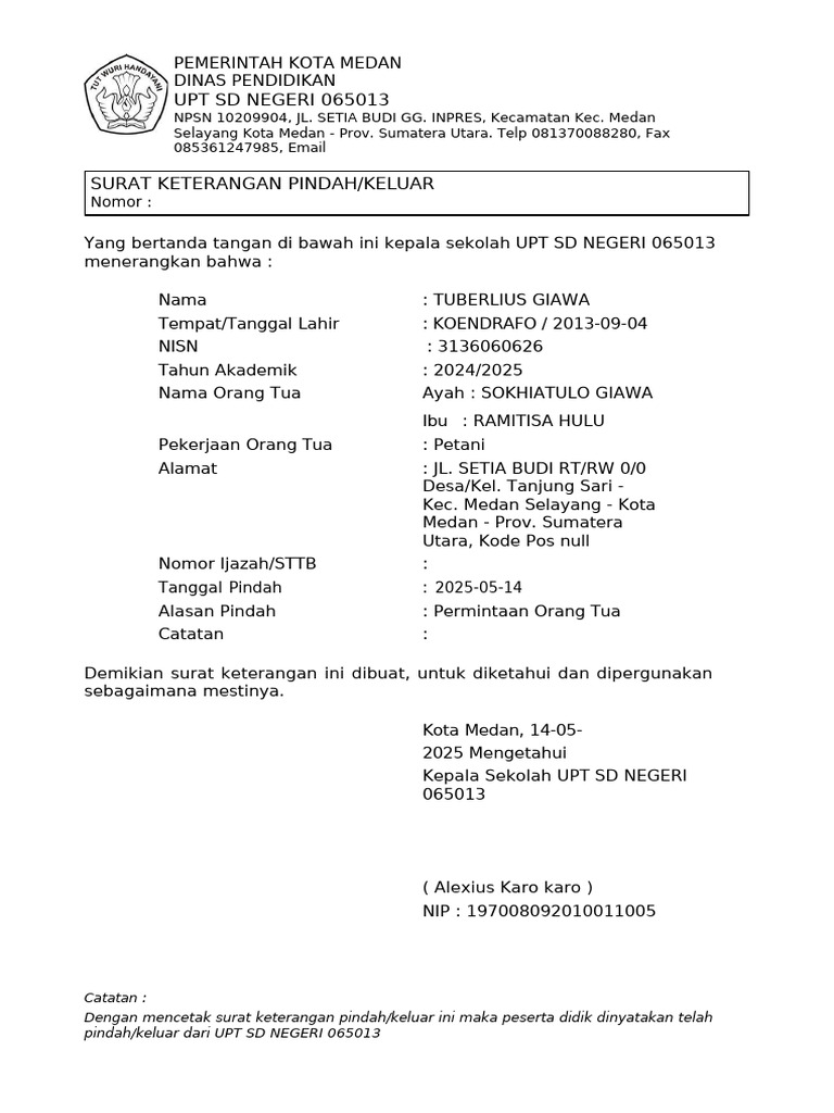 Dengan mencetak surat keterangan pindah/keluar ini maka peserta didik dinyatakan telah