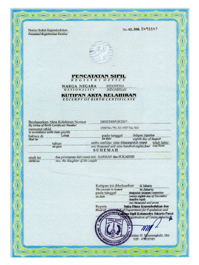 The excerpt is issued in Jakarta
