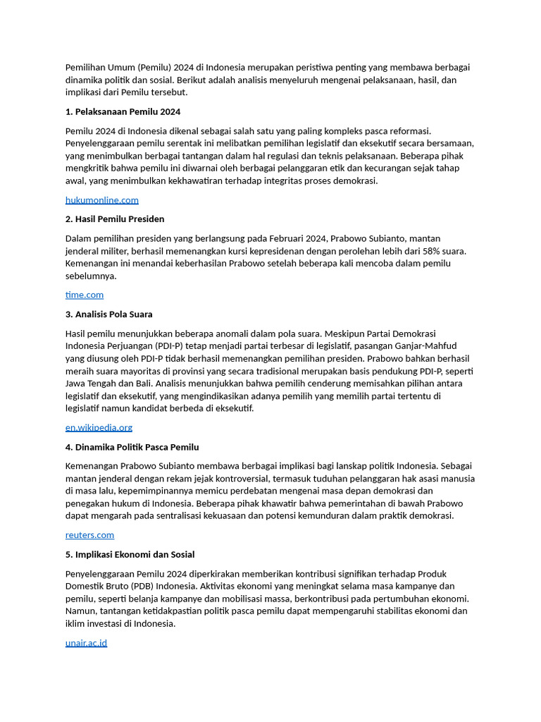 Pemilihan Umum (Pemilu) 2024 di Indonesia merupakan peristiwa penting yang membawa berbagai