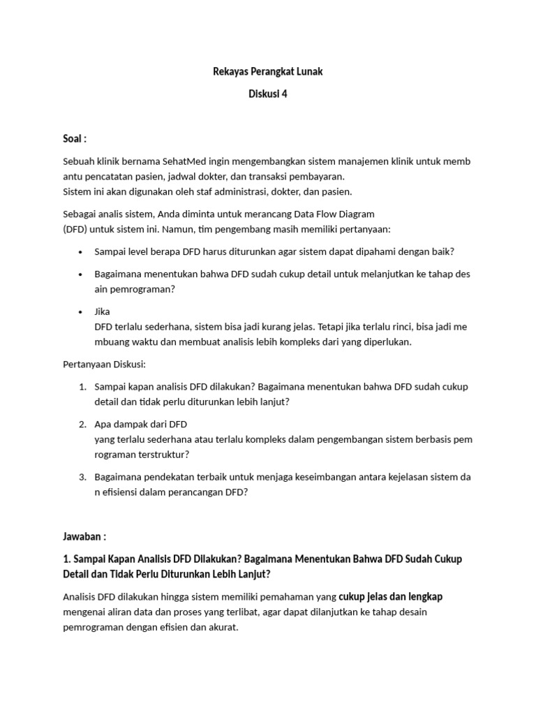 (DFD) untuk sistem ini. Namun, tim pengembang masih memiliki pertanyaan: