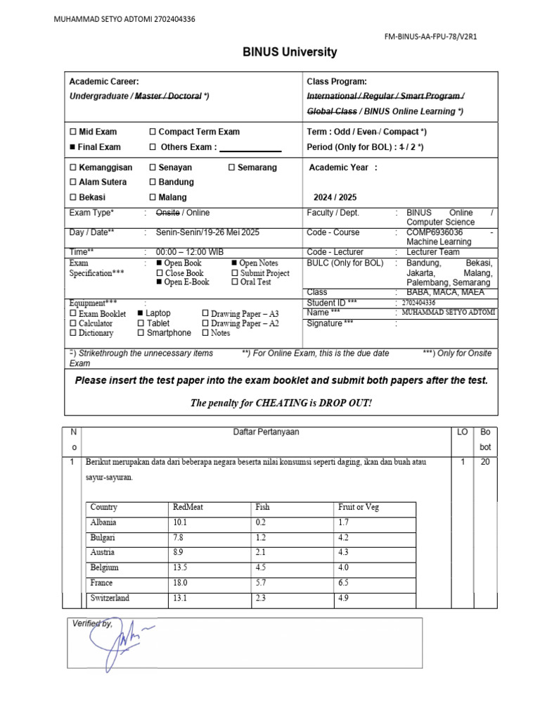 Exam Type* : Onsite / Online Faculty / Dept. : BINUS Online /