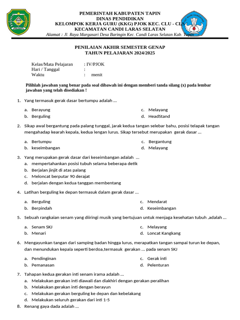 Kelas/Mata Pelajaran : IV/PJOK