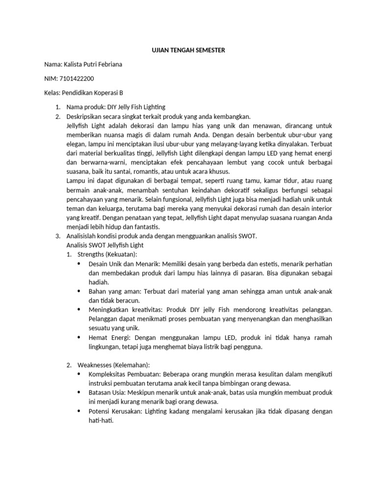-PPT yang anda susun, sebagai bahan persentasi produk anda dan sekaligus sebagai UAS