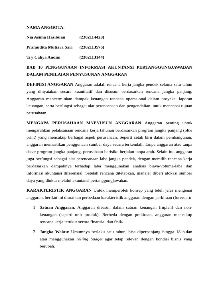 anggaran yang berisi para direktur juga bertugas untuk meyusun master budget. (2)