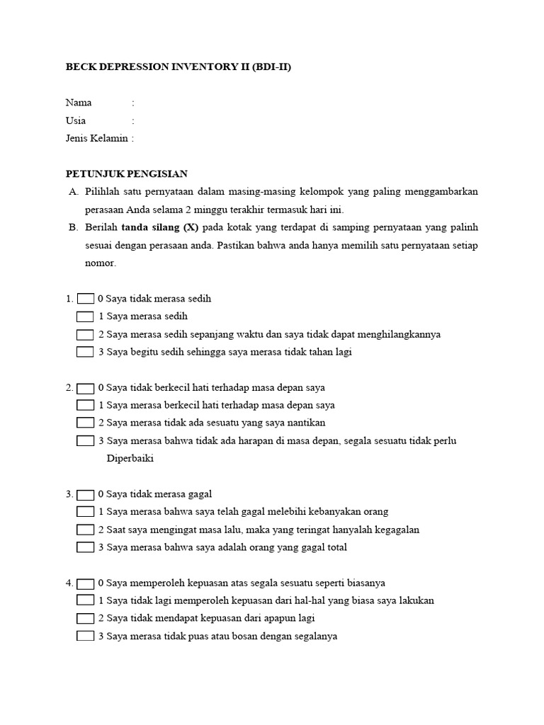 sesuai dengan perasaan anda. Pastikan bahwa anda hanya memilih satu pernyataan setiap