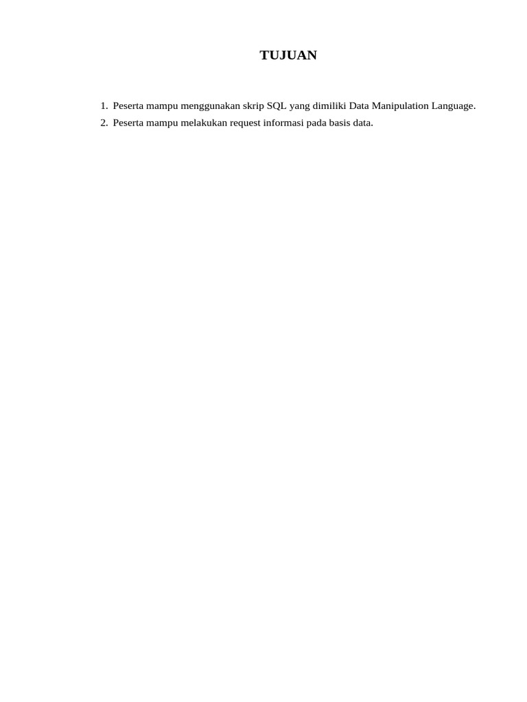 1. Peserta mampu menggunakan skrip SQL yang dimiliki Data Manipulation Language.