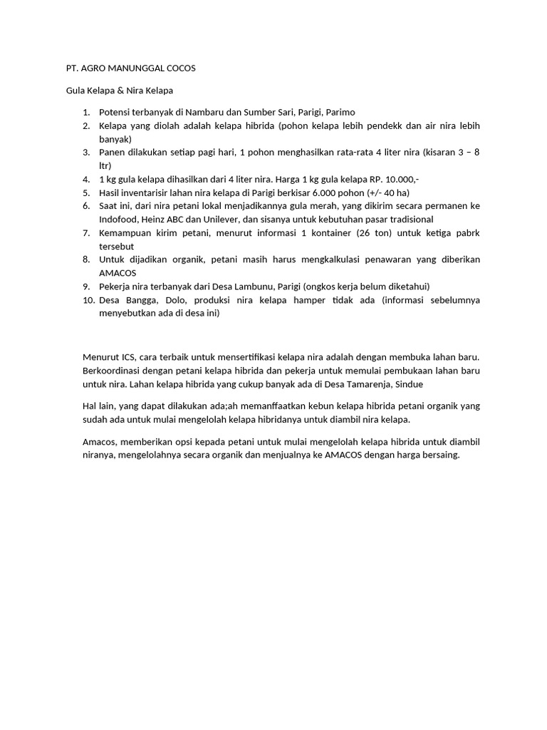 2. Kelapa yang diolah adalah kelapa hibrida (pohon kelapa lebih pendekk dan air nira lebih
