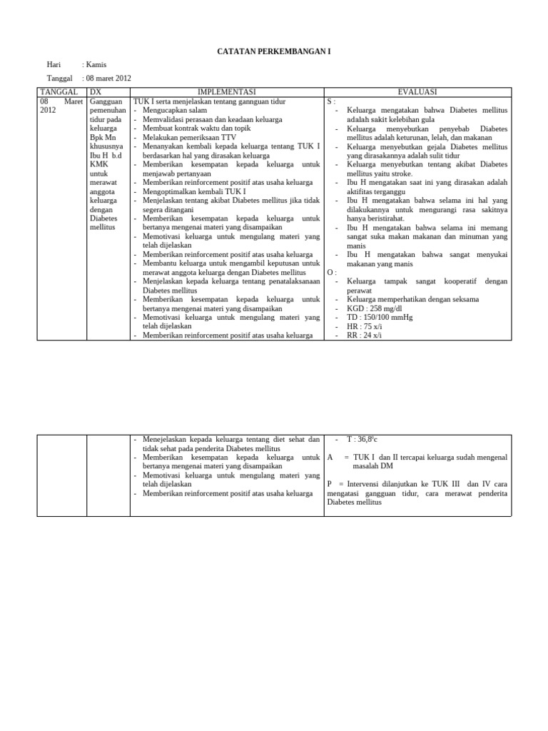 khususnya - Menanyakan kembali kepada keluarga tentang TUK I - Keluarga menyebutkan gejala Diabetes mellitus