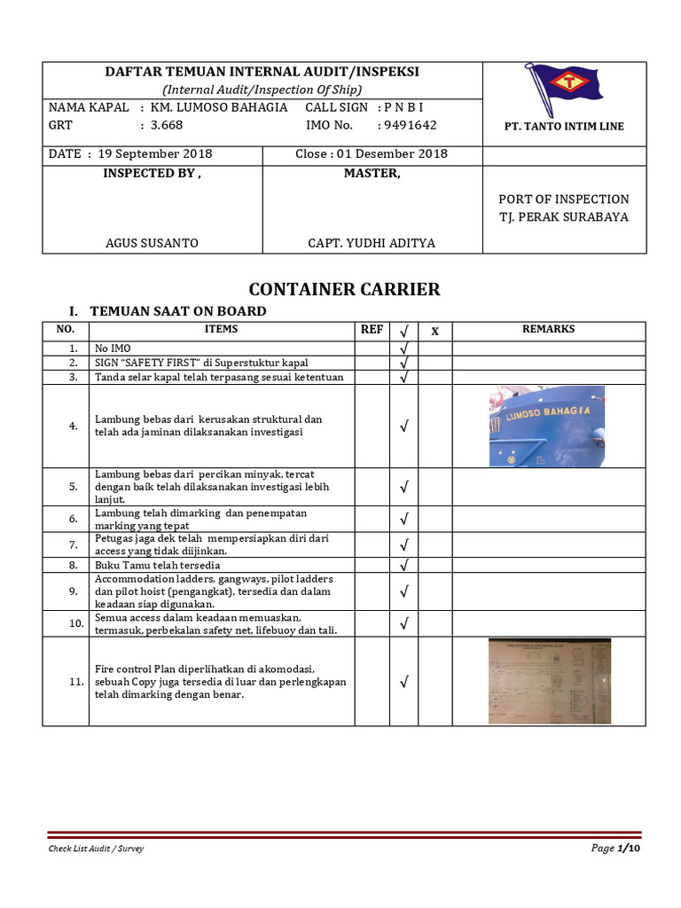 DAFTAR TEMUAN INTERNAL AUDIT/INSPEKSI