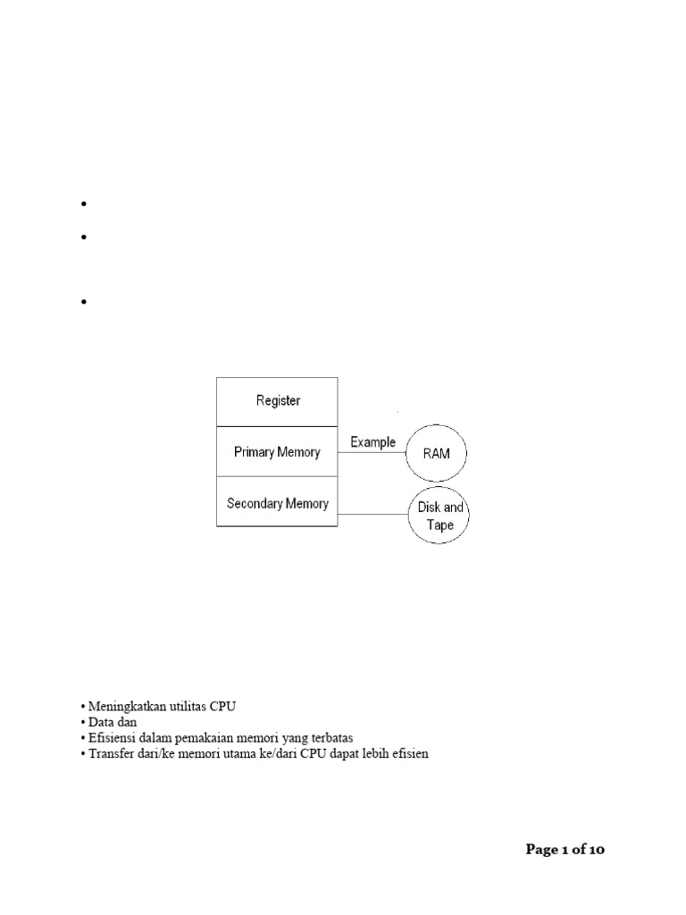 Secondary Memory, berada di level bawah. Contohnya, disk atau tape. Secondary Memory