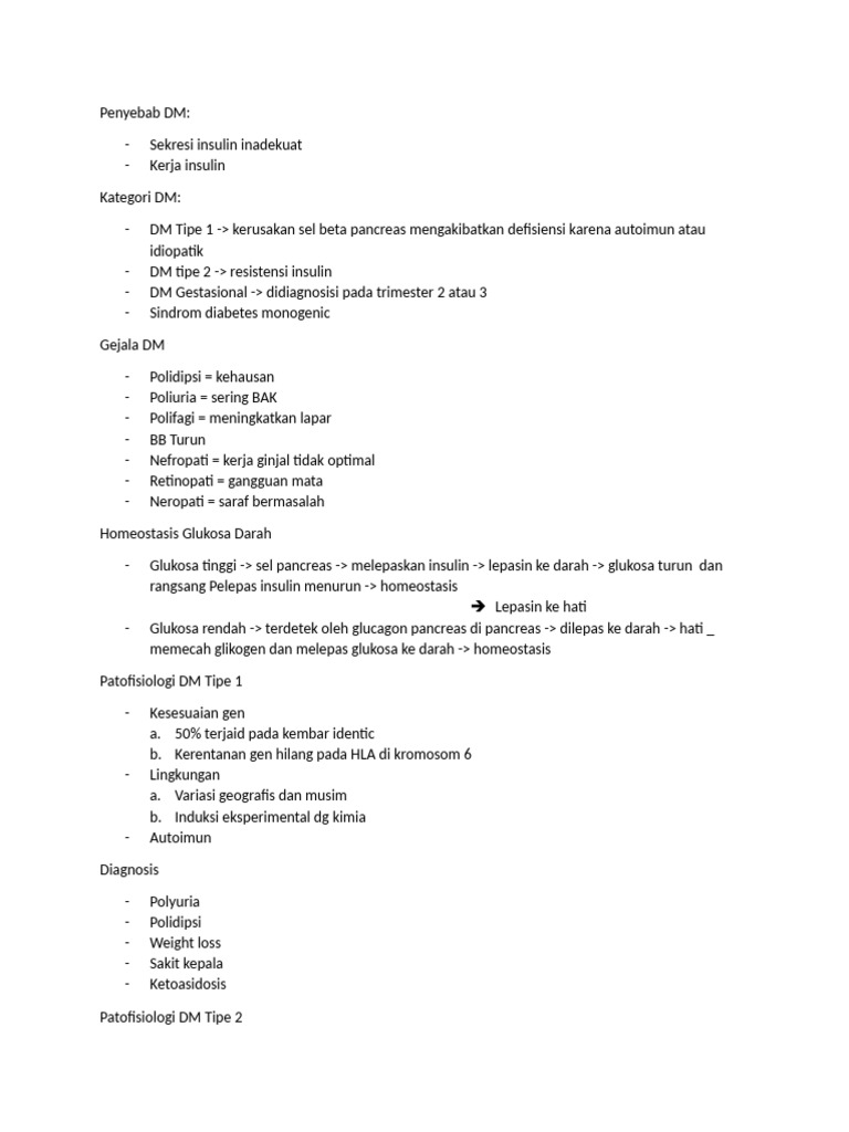 - DM Tipe 1 -> kerusakan sel beta pancreas mengakibatkan defisiensi karena autoimun atau