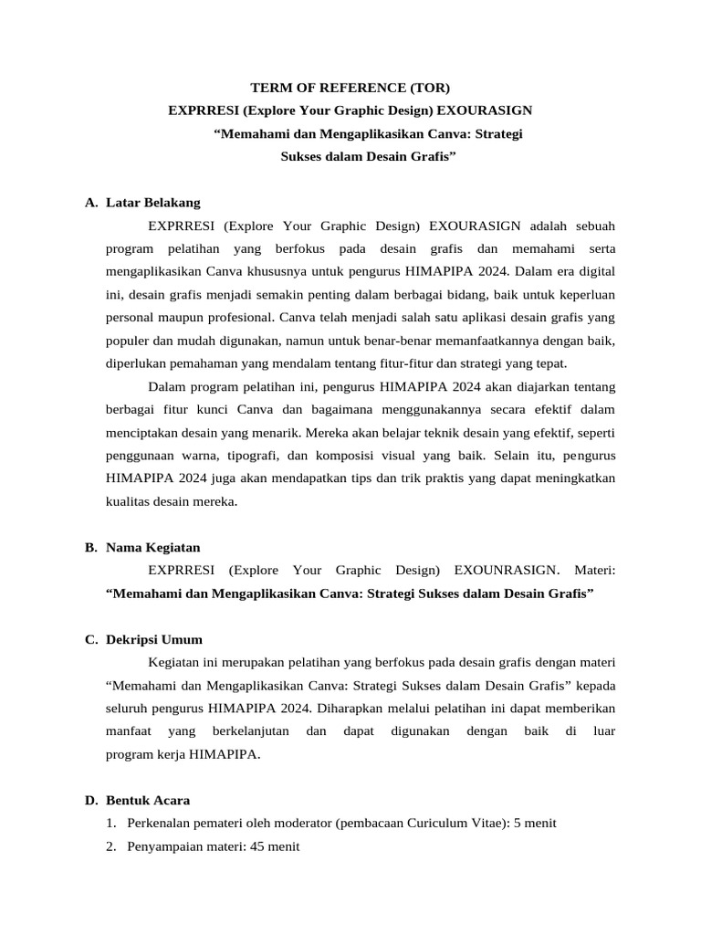 Demikian TOR ini kami sampaikan dengan harapan kita dapat berkerjasama untuk