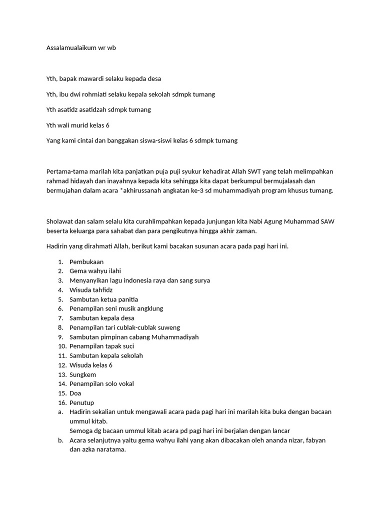 Hadirin yang dirahmati Allah, berikut kami bacakan susunan acara pada pagi hari ini.