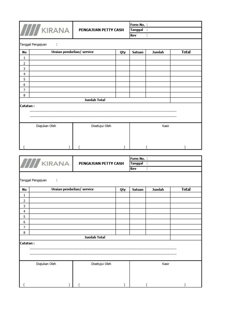 Diajukan Oleh Disetujui Oleh Kasir