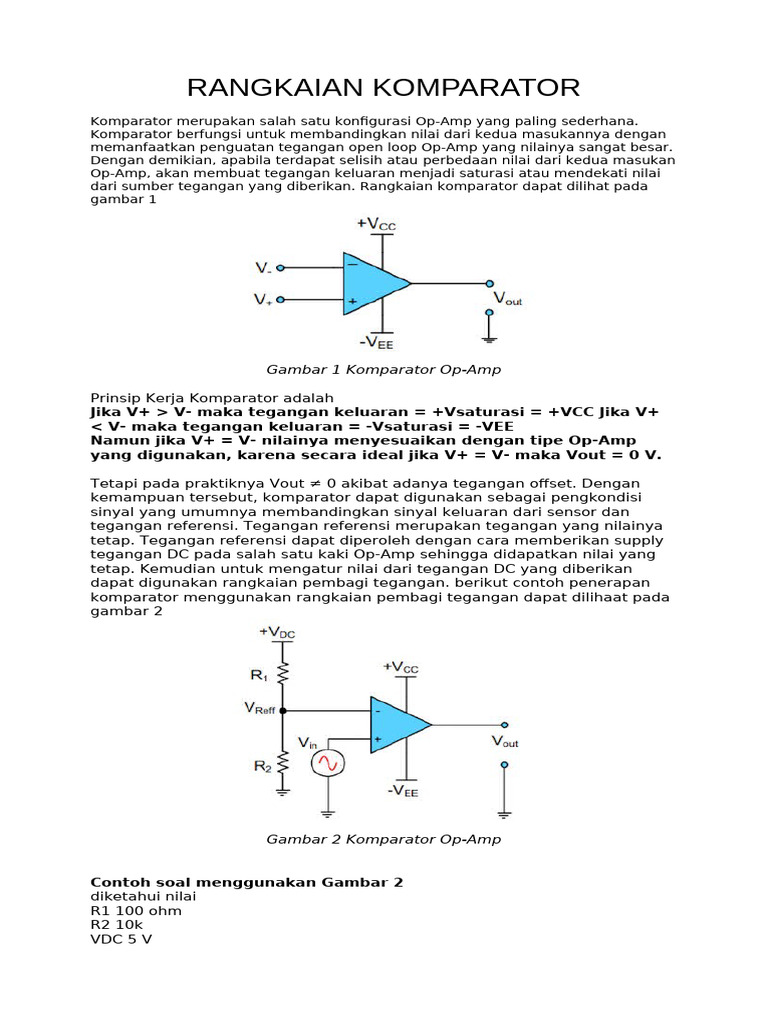 Komparator berfungsi untuk membandingkan nilai dari kedua masukannya dengan
