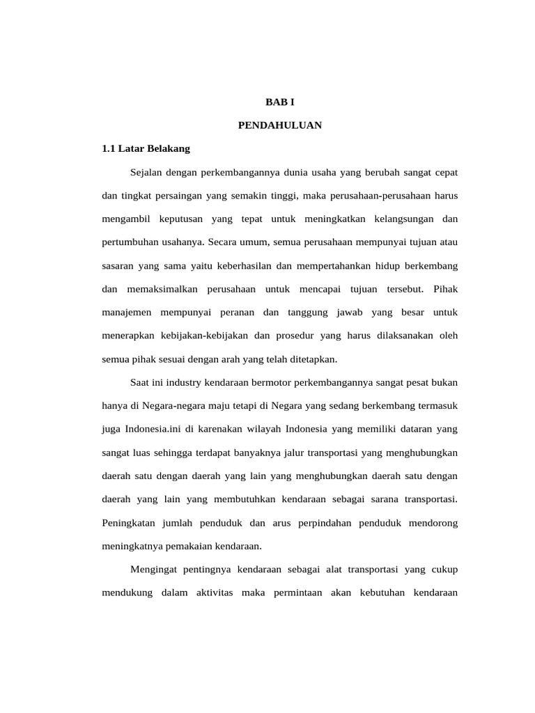 Saat ini industry kendaraan bermotor perkembangannya sangat pesat bukan