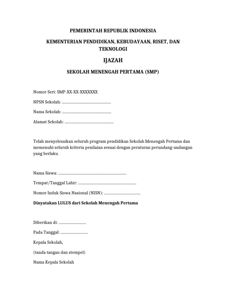 - Jika ingin blangko resmi, gunakan kertas ijazah yang dikeluarkan oleh dinas