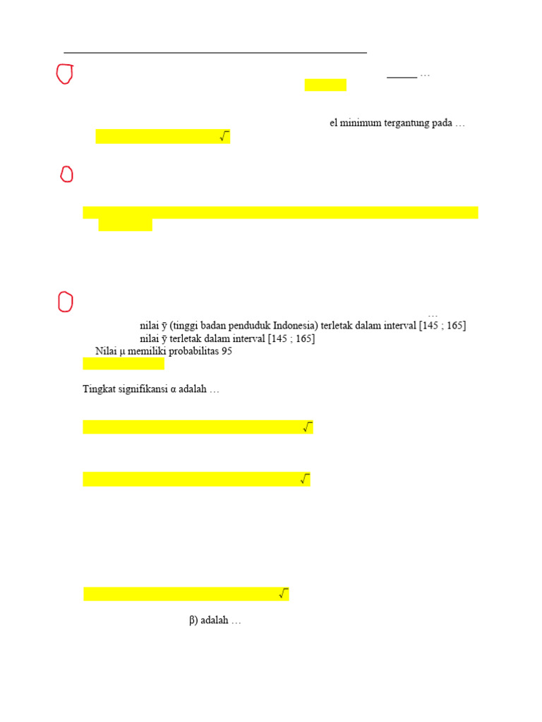 4. Jika dari hasil suatu penelitian, dinyatakan bahwa interval konfidensi 95% nilai rerata tinggi