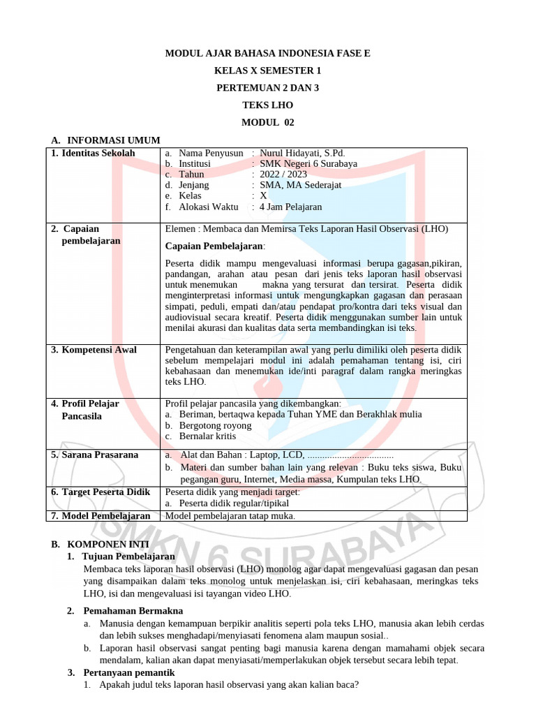 6. Peserta didik mengevaluasi informasi teks LHO untuk