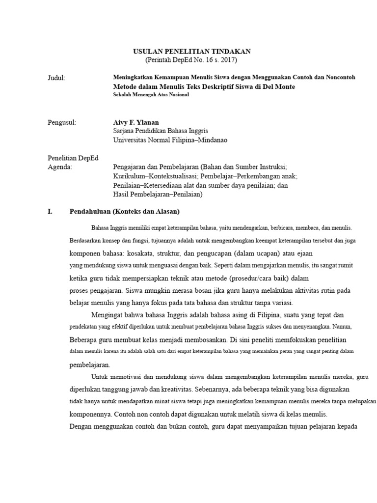 Judul: Meningkatkan Kemampuan Menulis Siswa dengan Menggunakan Contoh dan Noncontoh