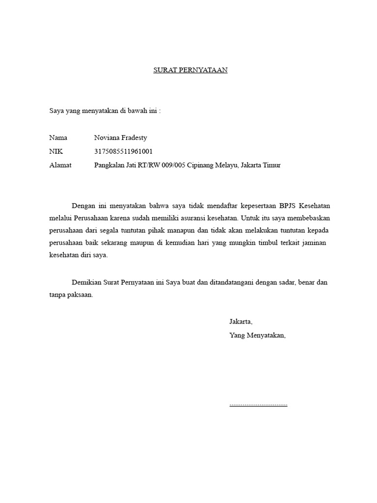 Dengan ini menyatakan bahwa saya tidak mendaftar kepesertaan BPJS Kesehatan