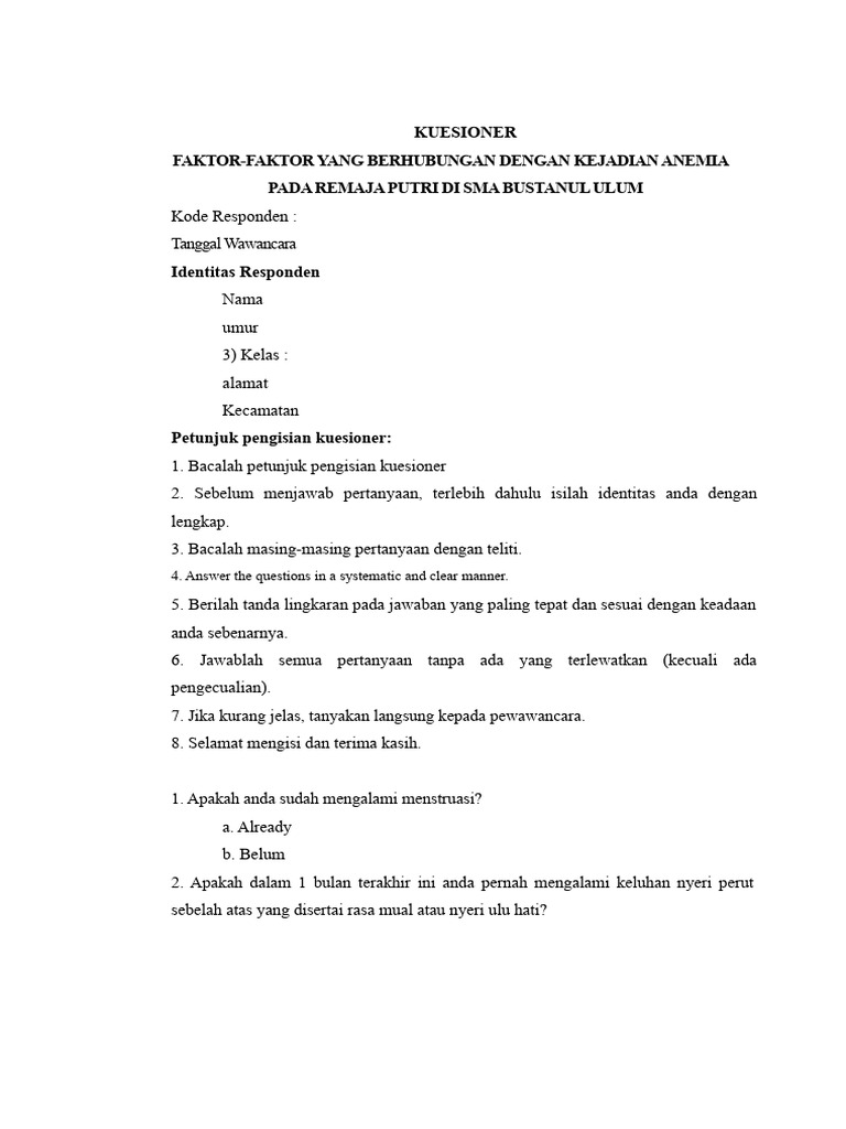 2. Sebelum menjawab pertanyaan, terlebih dahulu isilah identitas anda dengan