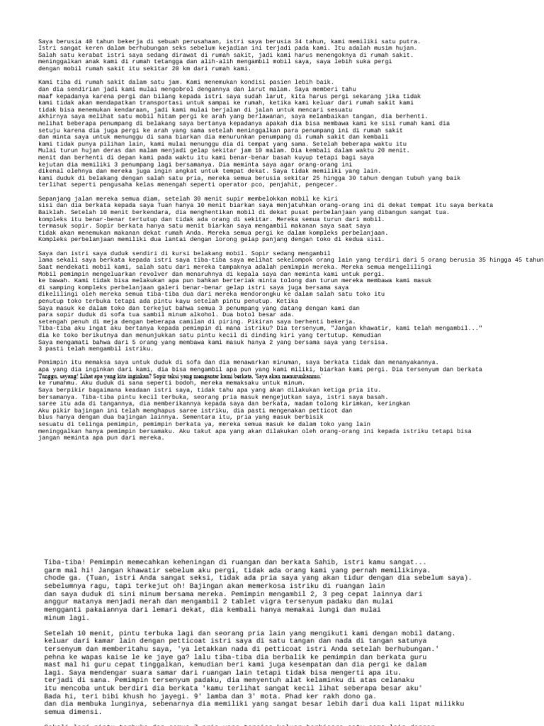 Saya berpikir bagaimana keadaan istri saya, tidak tahu apa yang akan dilakukan ketiga pria itu.