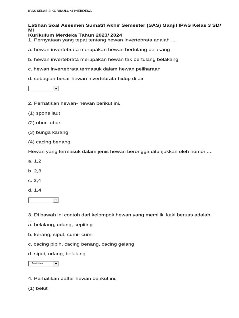 Latihan Soal Asesmen Sumatif Akhir Semester (SAS) Ganjil IPAS Kelas 3 SD/