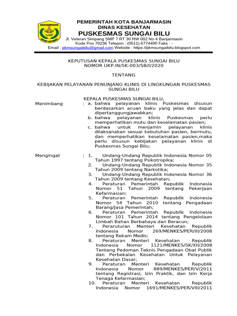 KEPUTUSAN KEPALA PUSKESMAS SUNGAI BILU