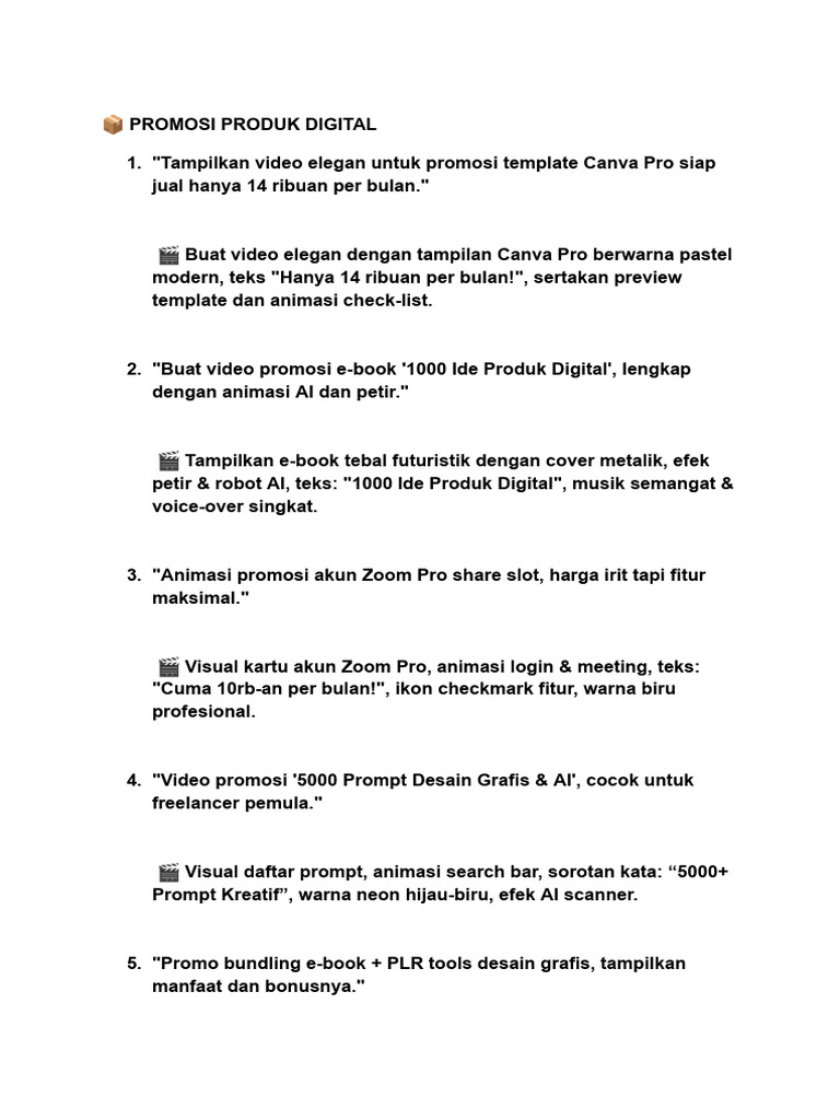 2. "Buat video promosi e-book '1000 Ide Produk Digital', lengkap