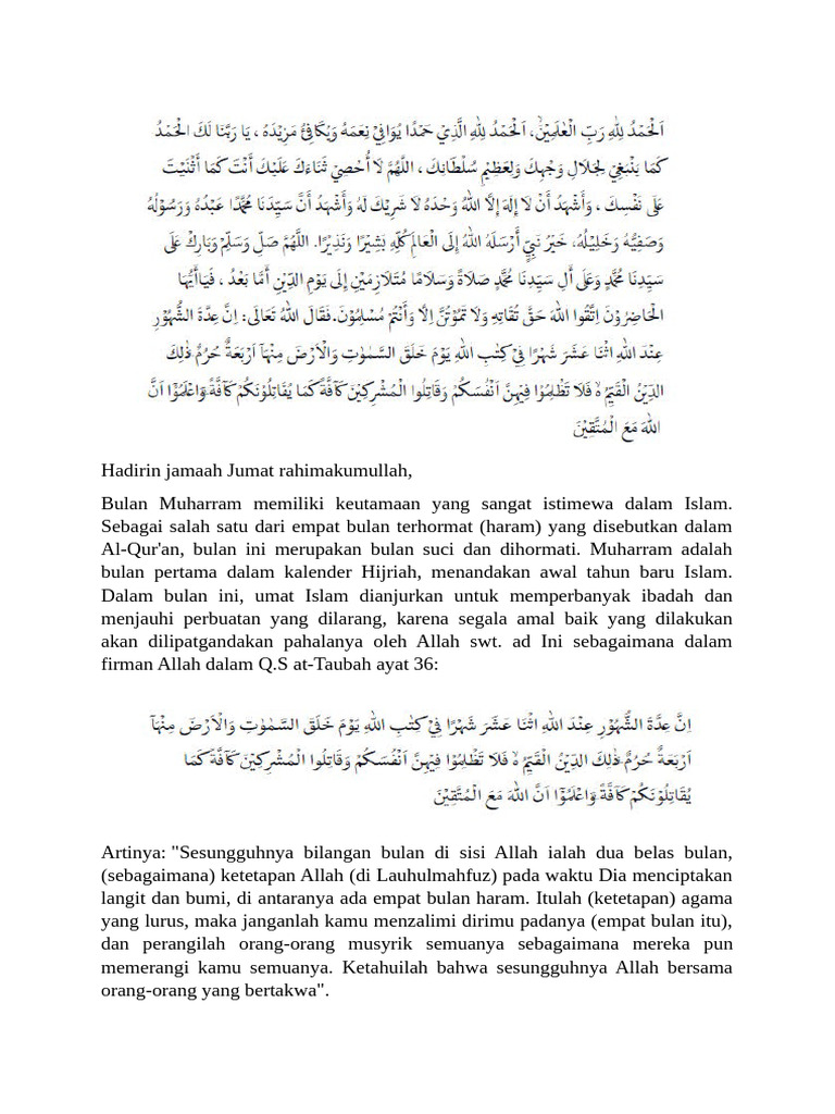 Bulan Muharram yang telah disebutkan dalam Al-Qur'an. Semoga kita bisa