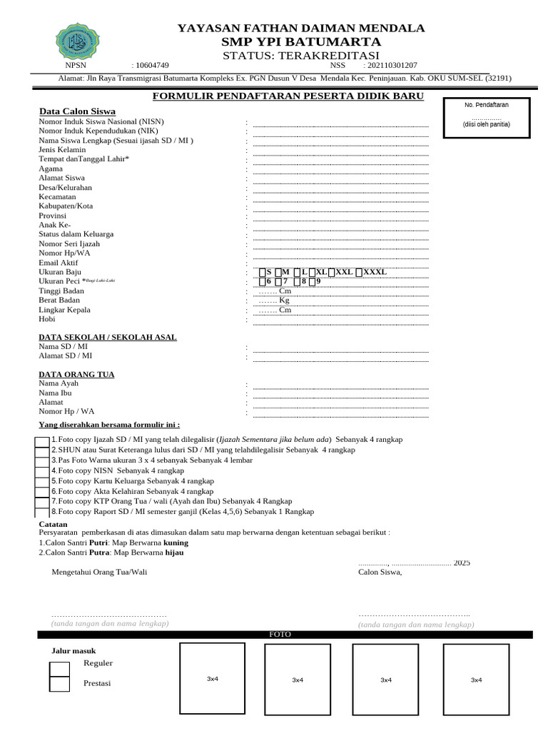 FORMULIR PENDAFTARAN PESERTA DIDIK BARU