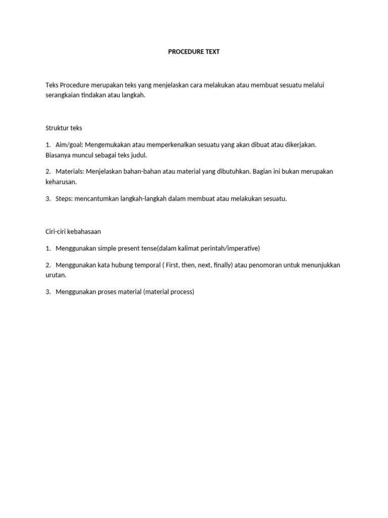 Teks Procedure merupakan teks yang menjelaskan cara melakukan atau membuat sesuatu melalui