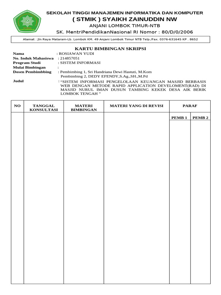 ( STMIK ) SYAIKH ZAINUDDIN NW