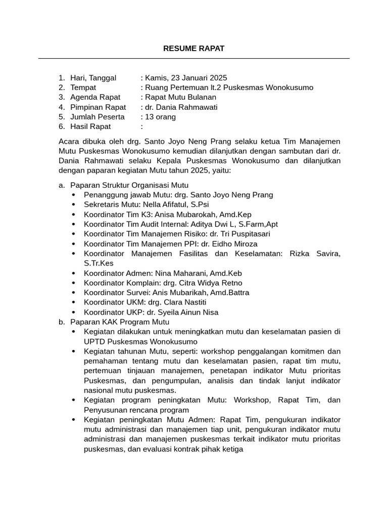 3. Agenda Rapat : Rapat Mutu Bulanan