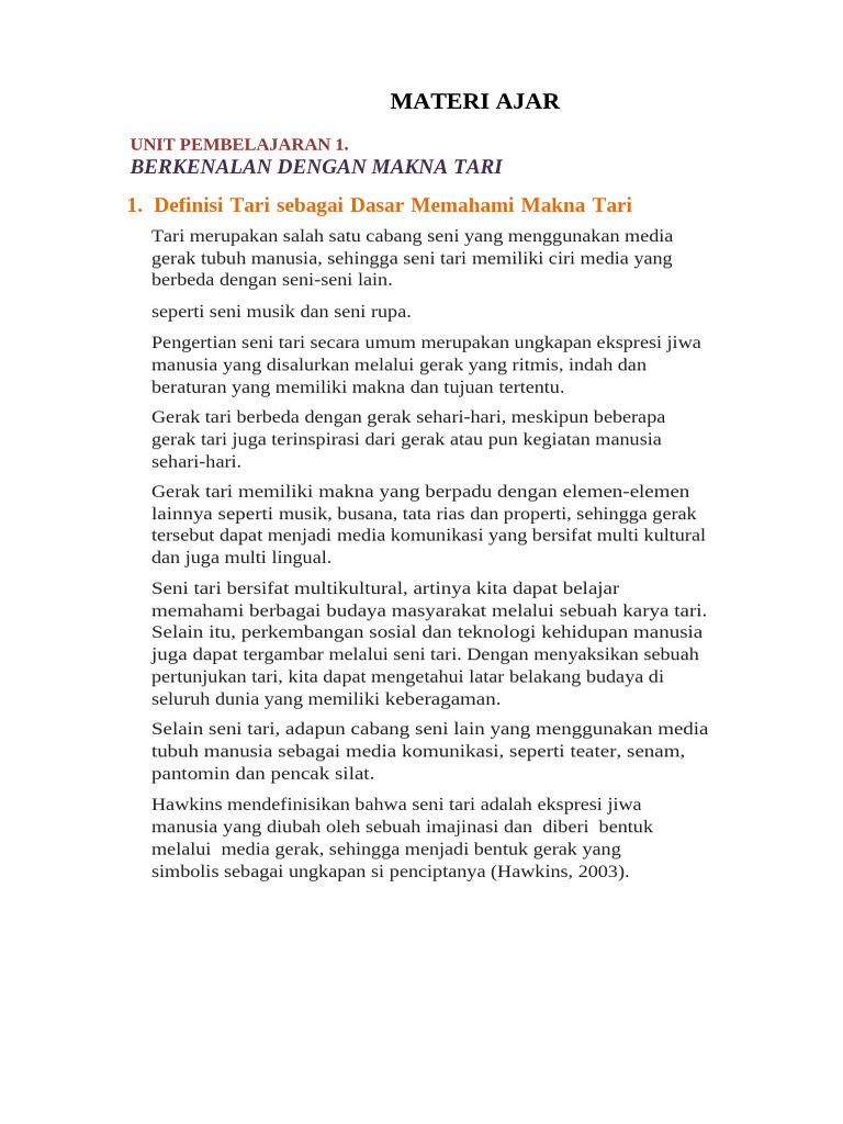 1. Definisi Tari sebagai Dasar Memahami Makna Tari