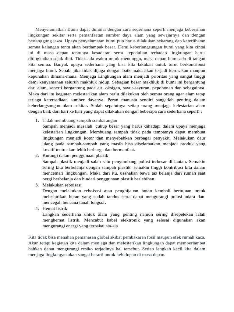 Menyelamatkan Bumi dapat dimulai dengan cara sederhana seperti menjaga kebersihan