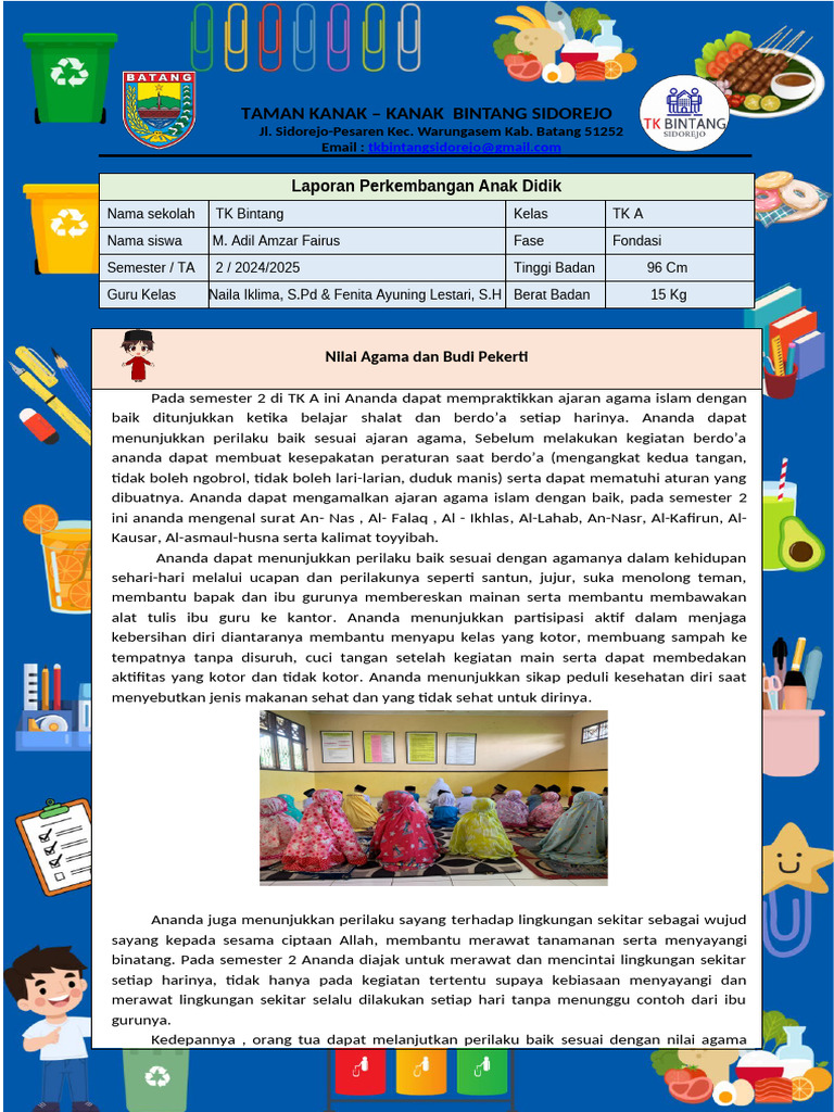 Keberhasilan pembelajaran yang dicapai ananda bukan hanya dari sisi akademik, tetapi