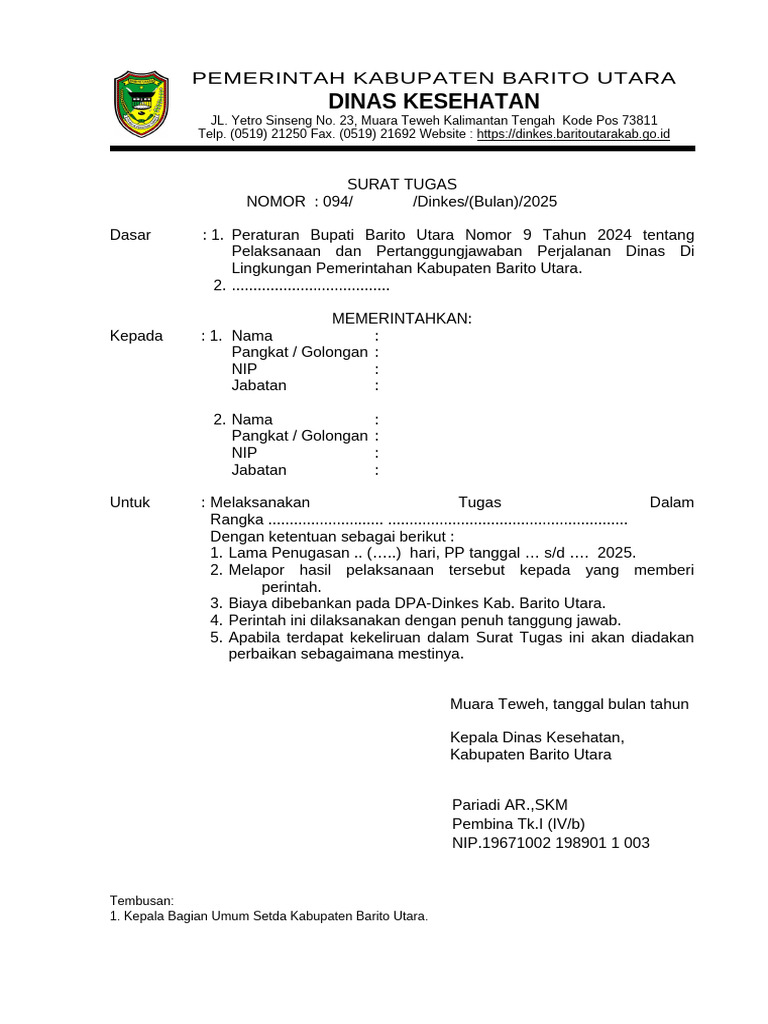 Dasar : 1. Peraturan Bupati Barito Utara Nomor 9 Tahun 2024 tentang