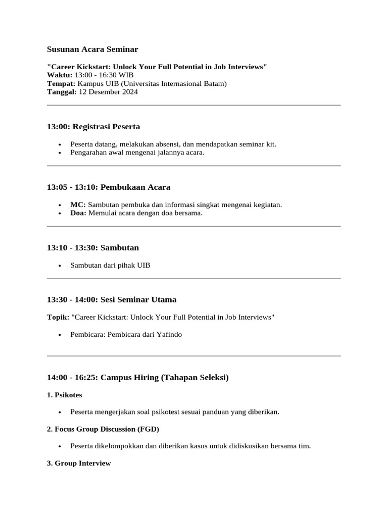 14:00 - 16:25: Campus Hiring (Tahapan Seleksi)
