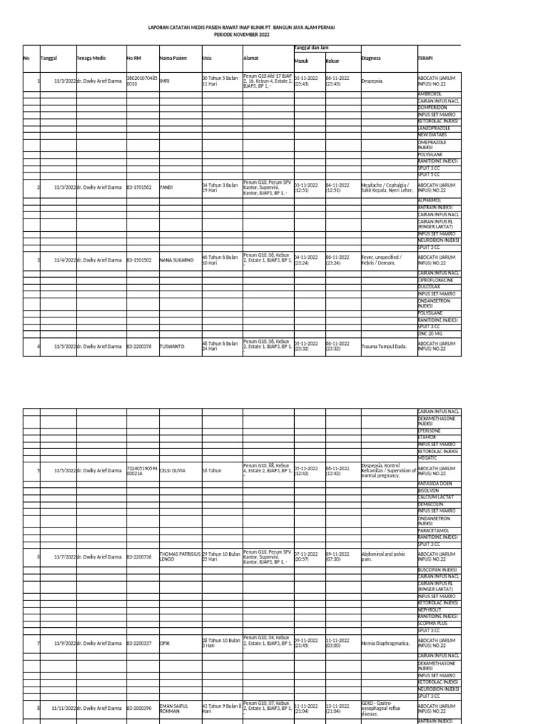 No Tanggal Tenaga Medis No RM Nama Pasien Usia Alamat Diagnosa TERAPI