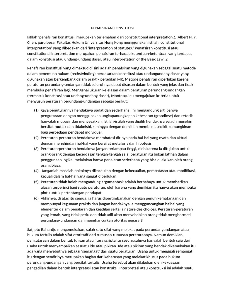 (1) Dalam kepustakaan berbahasa Inggris, istilah constitutional interpretation banyak digunakan