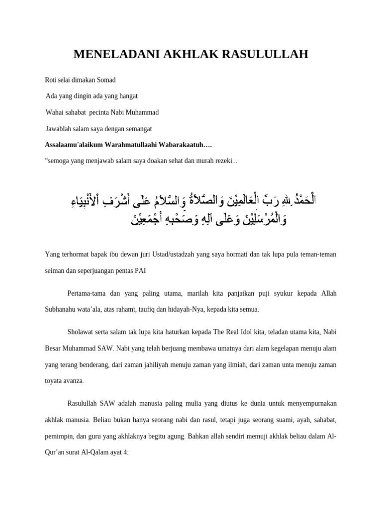 ejekan teman dengan amarah, serta menepati janji. Sebagai remaja kita bisa menunjukan akhlak rasul