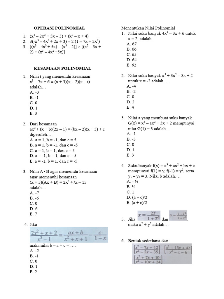 Latihan Polinomial 14. Akar persamaan 7x3 - 5x2 + 8x - 12 = 0 adalah
