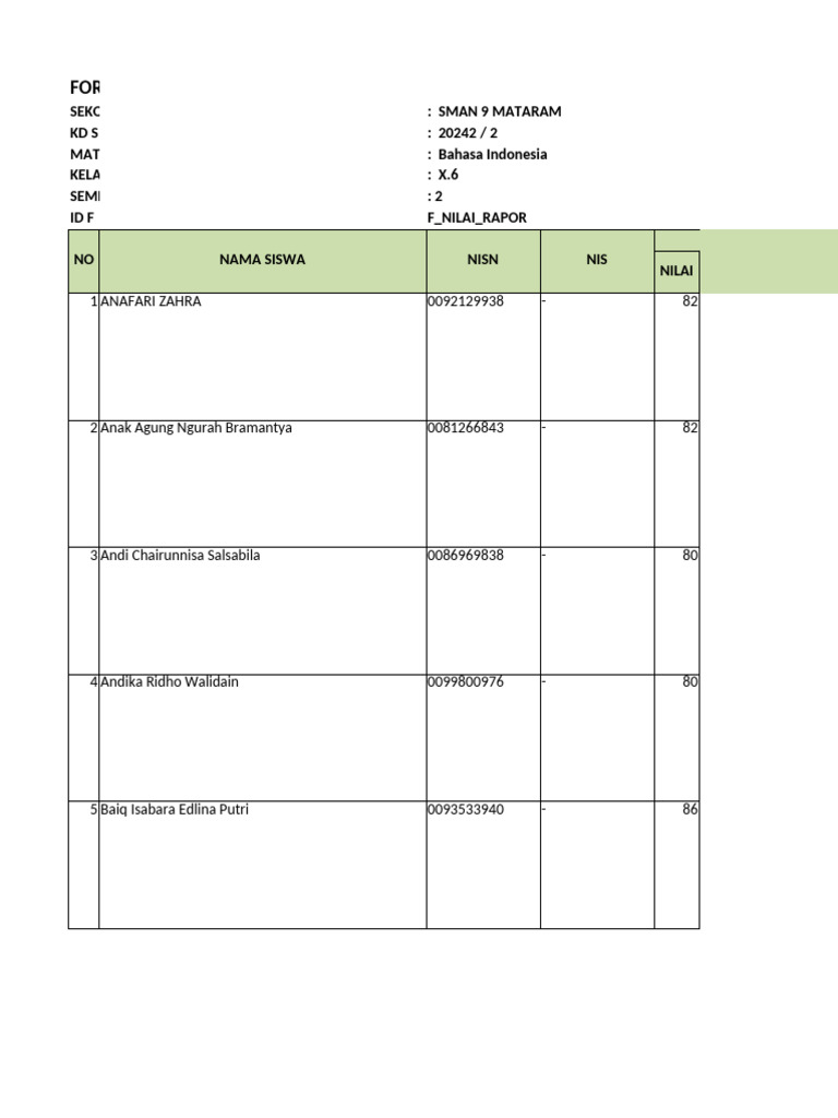 ID F F_NILAI_RAPOR