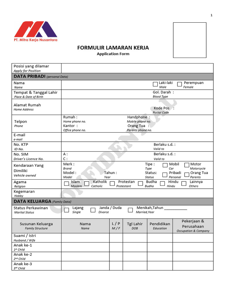 FORMULIR LAMARAN KERJA